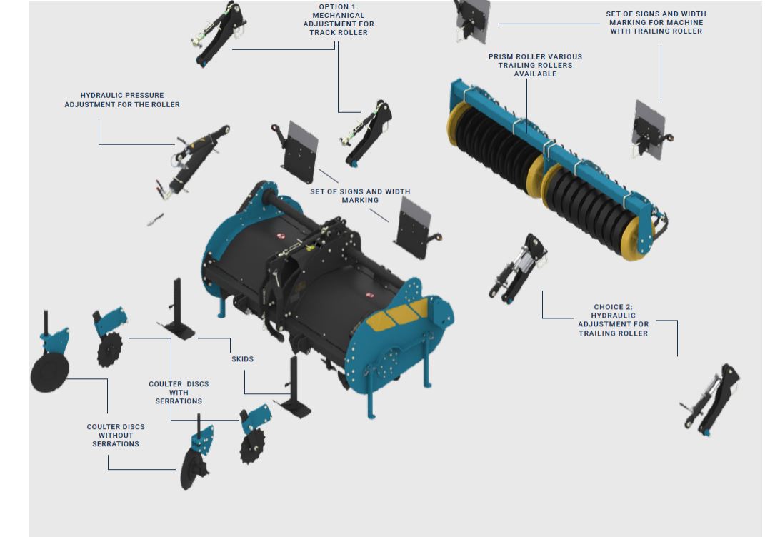 Za težje tipe tal priporočamo uporabo samo-čistilnega prizma valja. Ta valj rahlo zmanjša velikost grud in zemljo nekoliko stisne, da se oblikuje ravna in