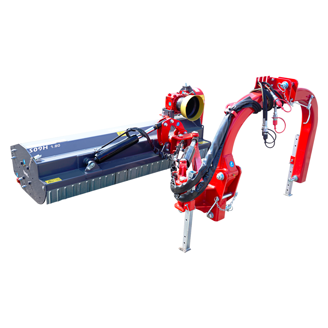 Bočni mulčer primeren za čiščenje obcestnih robov, jarkov, nasipov, vrtov in zelenih površin. Opremljen s hidravličnim nagibom, ki doseže navpičen položaj do 90° za obrezovanje in drobljenje žive meje. Priporočljiv za košnjo trave, vejic in vej do premera 4 cm. Primeren za delo za in ob traktorju.