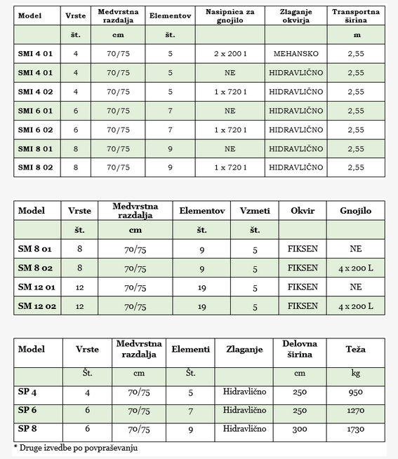 - paralelogram elementi z vzmetnimi kraki 32 x 10, nastavljive stranske plošče proti poškodovanju rastlin. Železna globinska kolesa premera 250 x 100, nameščena na ležaje ali pol-pnevmatska kolesa. 2 kosa nastavljivih vzmeti za nastavitev pritiska paralelograma