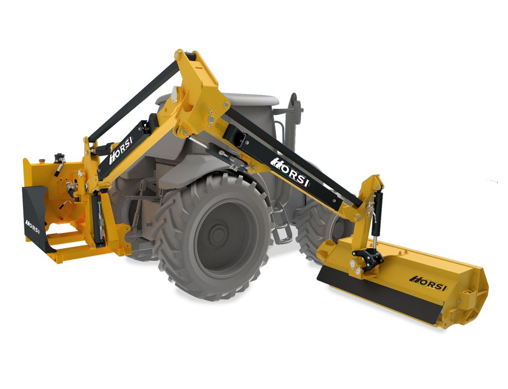Mulčer na roki s paralelogramom primerna za vzdrževanje jarkov, živih mej in dreves s prvim centralnim in visokim nastavkom roke, priporočljiva za plezanje čez prometne znake in varovalne ograje, hidravlično vrtenje z varnostnim ventilom, hitra sprostitev na dvigalo. Kosilnico z dosegom je mogoče opremiti z različnimi končnimi orodji, rezalno glavo, palico za živo mejo, rezili za jarke, rezili za veje itd.