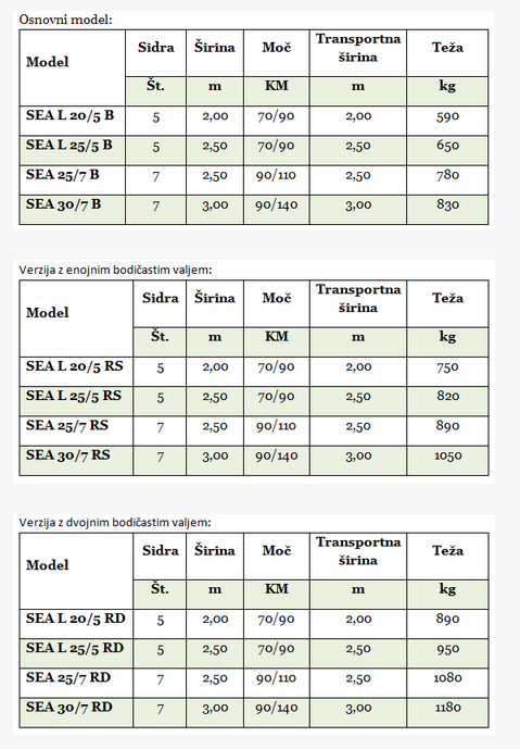 Za maksimalno moč je okvir narejen iz jekla 100x100x8. Število sider se giblje od 5 do 7, odvisno od delovne širine in konjskih moči traktorja, ki je na voljo.