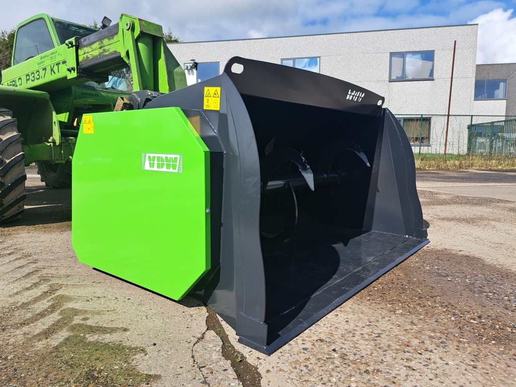 Vertikalna mešalna žlica za uporabo na teleskopskem ali kolesnem nakladalniku je primerna za mešanje vseh vrst izdelkov, kot so koruza, trava, slama, celuloza, ...