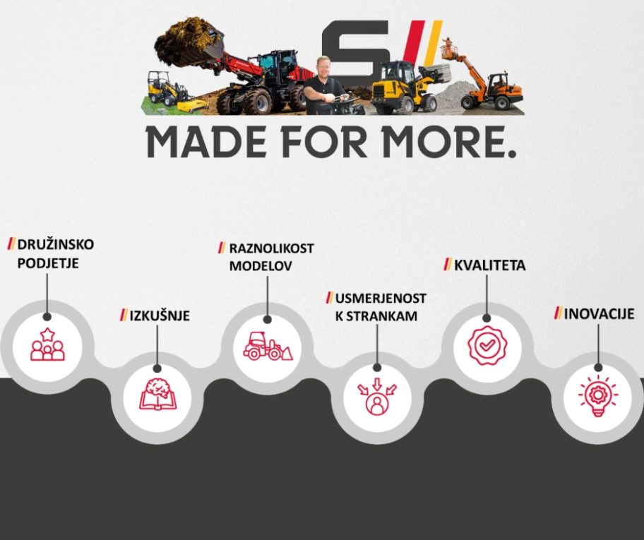 Kot družinsko podjetje s tradicijo od leta 1956 gradijo na vrednotah, ki jih povezujejo z uporabniki – zaupanju, poštenosti in osebnem pristopu. Njihova misija je ustvarjati visokokakovostne nakladalnike, ki združujejo najboljše tehnične rešitve z razumevanjem potreb vsakega uporabnika. Z nenehnimi inovacijami, kot so električni nakladalniki, tehnologija Schäffer Power Transmission in Eco Mode, postavljajo nove mejnike v panogi.